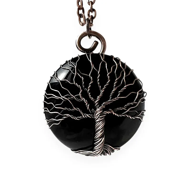 10th Anniversary Black Onyx and Copper Wire Wrapped Tree Of Life Pendant for Him, Tin Alternative Jewelry, 10 Years Together Necklace