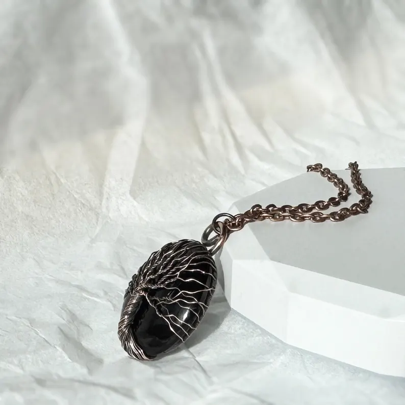 Celebrate 10 years together with this striking 10th Anniversary Black Onyx & Copper Wire Wrapped Tree of Life Pendant for Him, a meaningful tin alternative jewelry piece and a unique 10 years together necklace he’ll cherish.