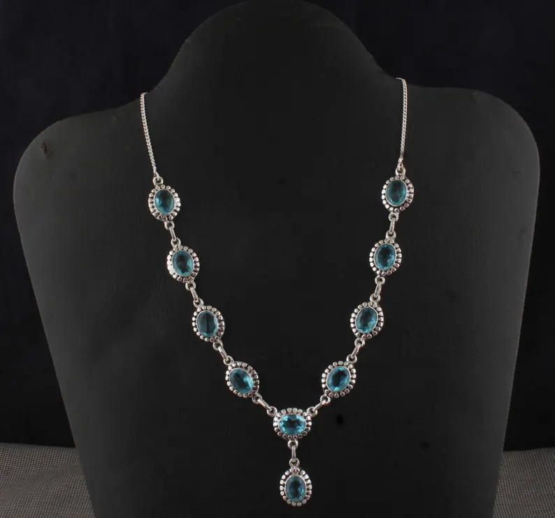 Blue Topaz Necklace, Oval Gemstone Necklace, 925 Sterling Silver Necklace Topaz Gemstone Necklace, December Birthstone Necklace, Gift Idea