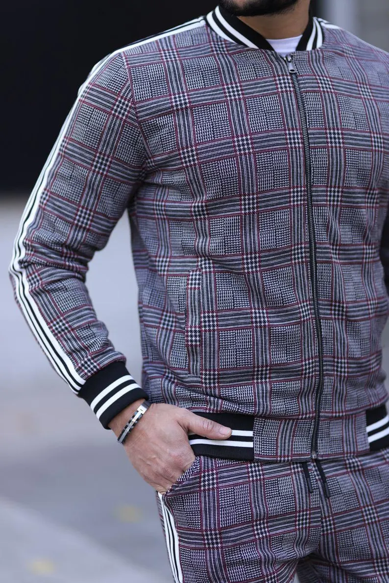 The Gentlemen Style Men’s Retro Tracksuit – Striped Slim Fit, Velvet Sports Suit – 2 Pieces