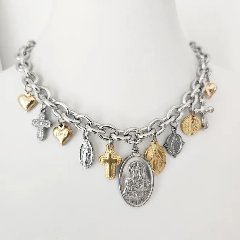 This chunky vintage-style necklace features a stunning collection of Catholic medals: