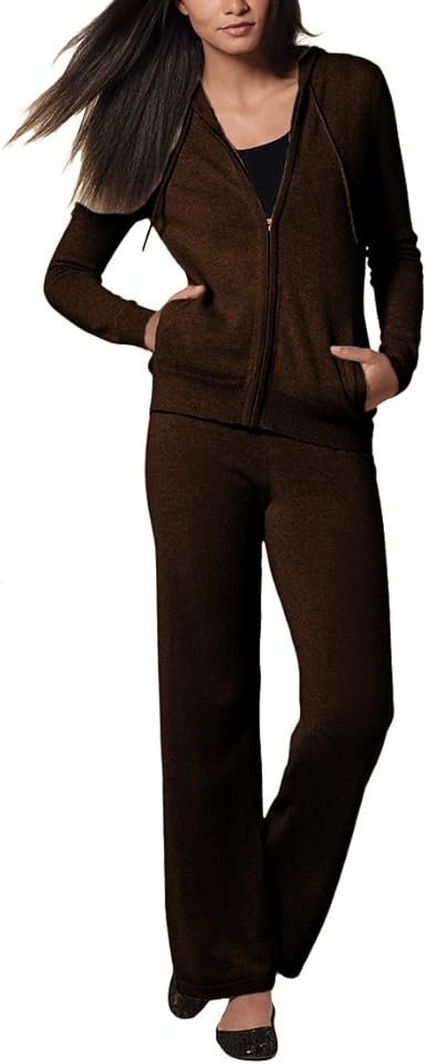 - This 2 Ply 100 percent pure cashmere women tracksuit can be worn as a sweater set, or as separates, the top is our classic hooded cardigan sweater, and the pants are a soft sweatpants, practical women 2 piece outfits sweater sets that goes with everything
