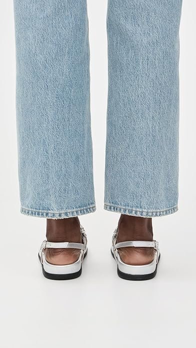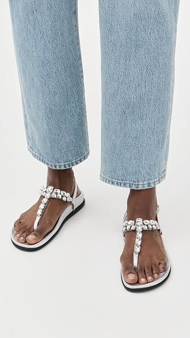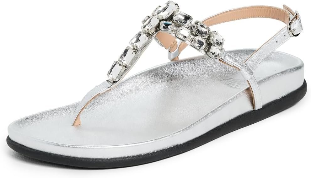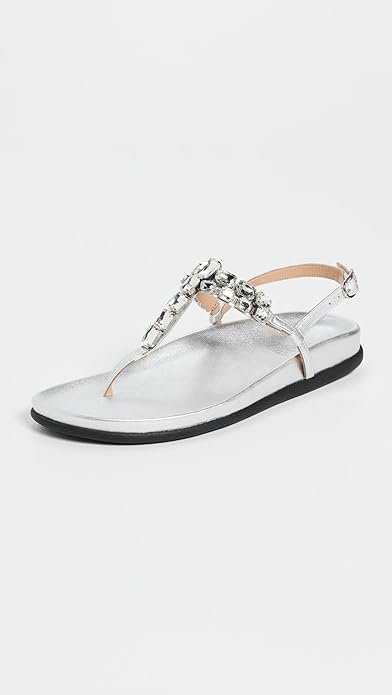 • Molded leather footbed, Metallic finish, Crystal embellishments